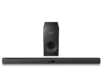 Good for the price, bass is nice. Too bad it won't link with Samsung TV and turn up/down with TV volume, you have to use its own remote to adjust volume separate from TV. It might do it via bluetooth, but this should be a feature that automatically knows its hooked to a Samsung TV linked via optical cord. TV volume and soundbar volume are always on, the TV sound does not cut off. Soundbar option allows it to come on when TV turned on, and shuts itself off after 20m when the TV turns off. The sound is strong, really helps add depth. It fits a 40" Samsung TV nicely, cannot really see it as it blends well at the bottom of the TV.